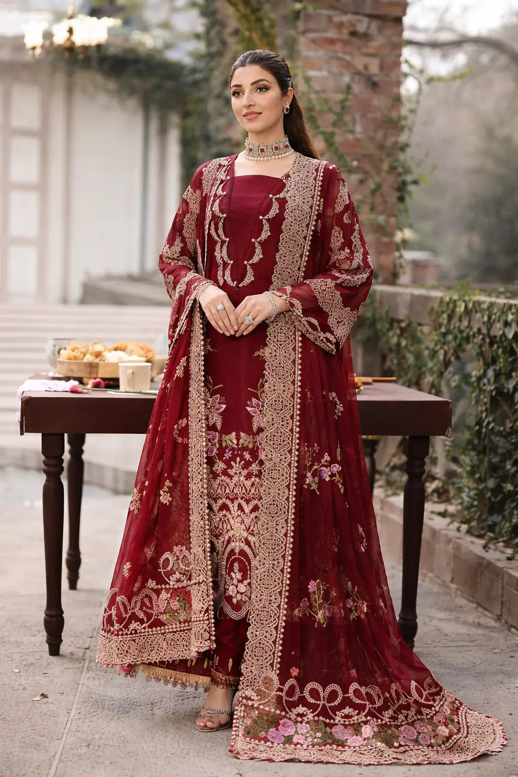 Mah-e-Rukh Mahroon - Luxury Lawn 3PC Chikenkari Heavy Embroidered Suit | Unstitched Summer Luxe '26